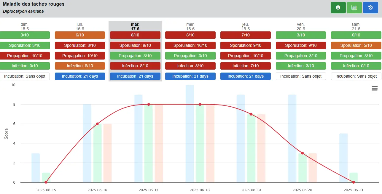 Le système expert évalue les risques pour chaque stade biologique et le traduit dans un SCORE de 1 à 10.